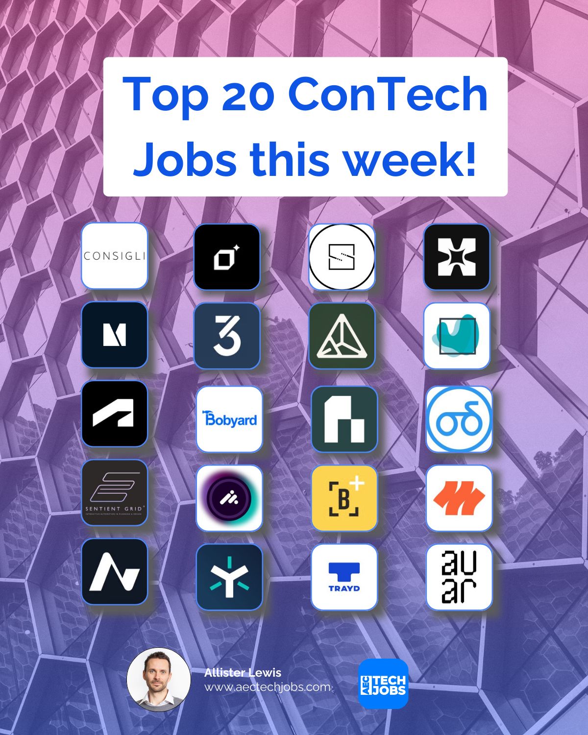 🔥 Below you’ll find the top 20 live ConTech roles - including Consigli, and many more at leading AEC, engineering and ConTech firms.