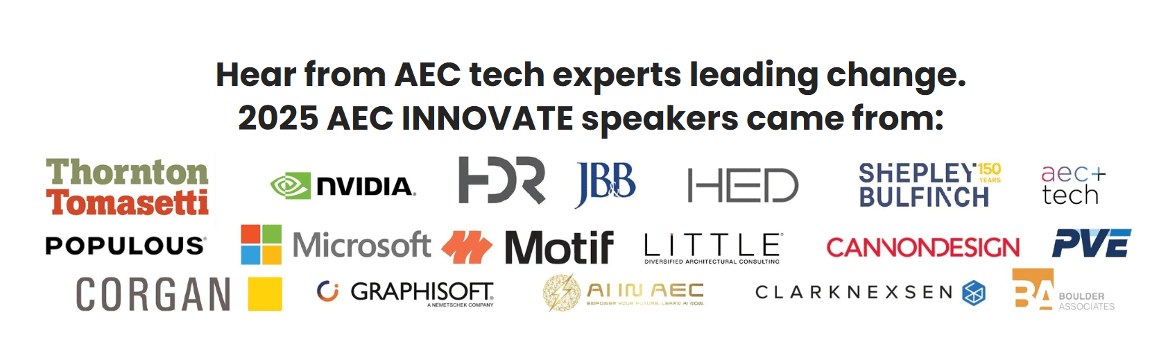 You get two days of high-intent conversations with senior AEC leaders who are actively: