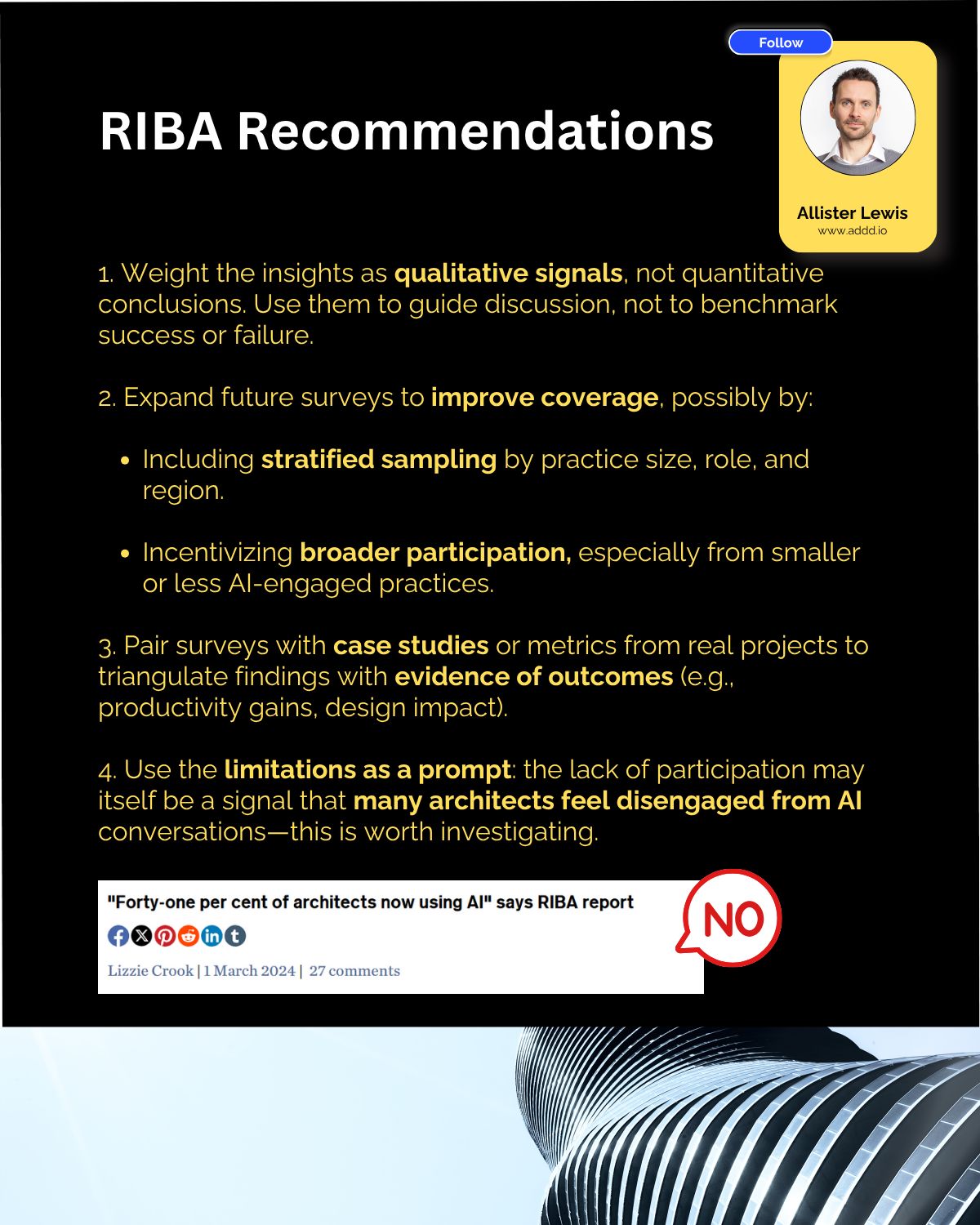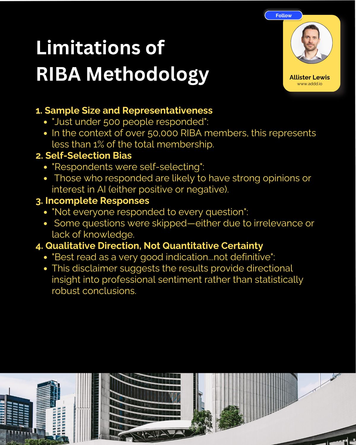 Thanks for being part of this newsletter, this week I wanted to explore the recent RIBA AI 2025 survey results. I give an overview and why I think that this is sub optimal in terms of their methodology.