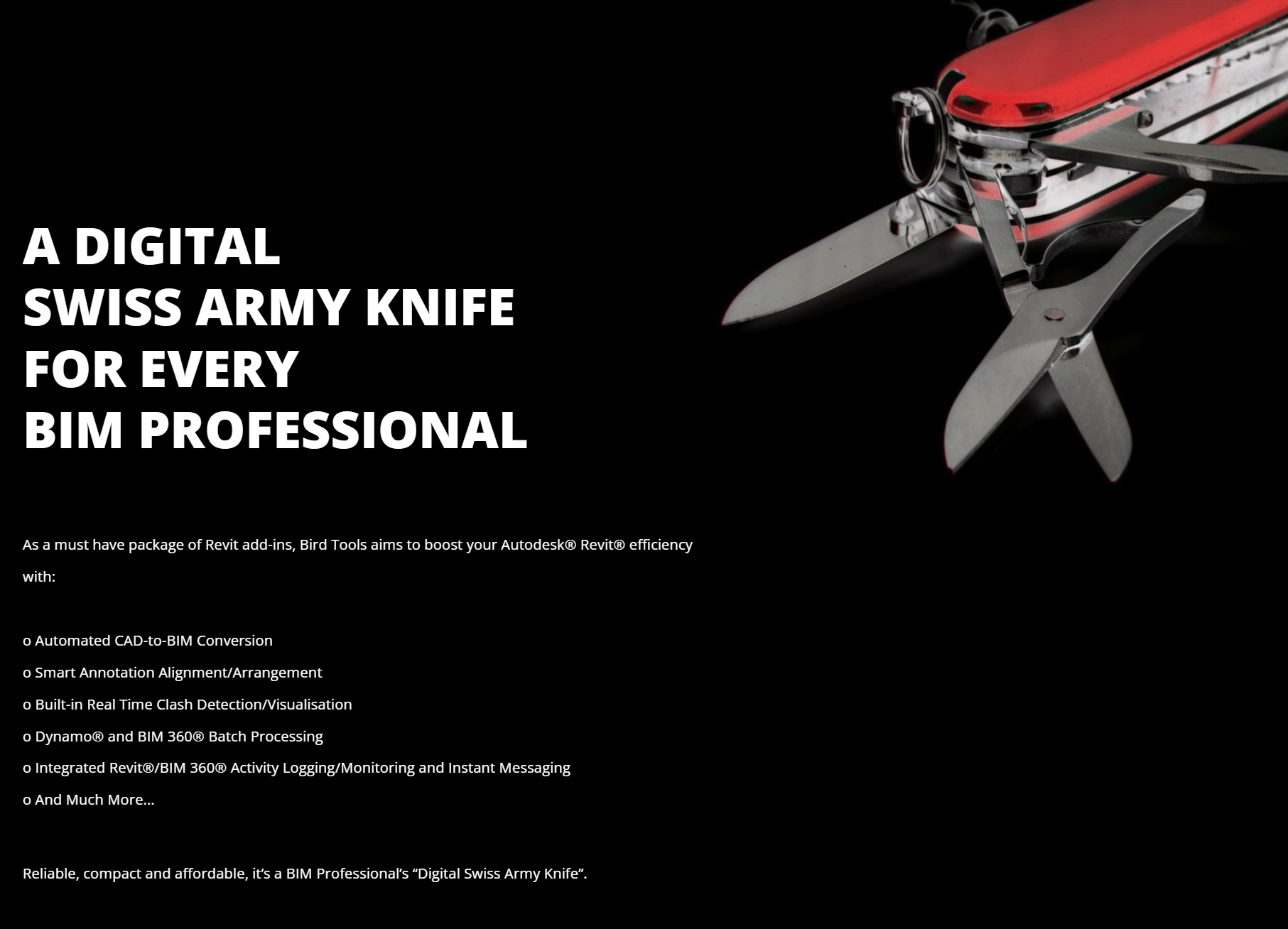Bird Tools - A Digital Swiss Army Knife For Every BIM Professional. As a must have package of Revit add-ins, Bird Tools aims to boost your Autodesk® Revit® efficiency with: