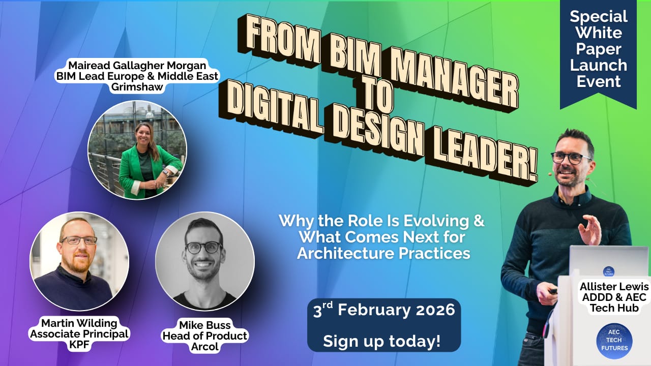This webinar also marks the official launch of a new white paper exploring the evolution of the BIM Manager into the Digital Design Leader. Attendees will receive first access to the thinking and real-world insights behind the research. This is a collaboration supported by Arcol.